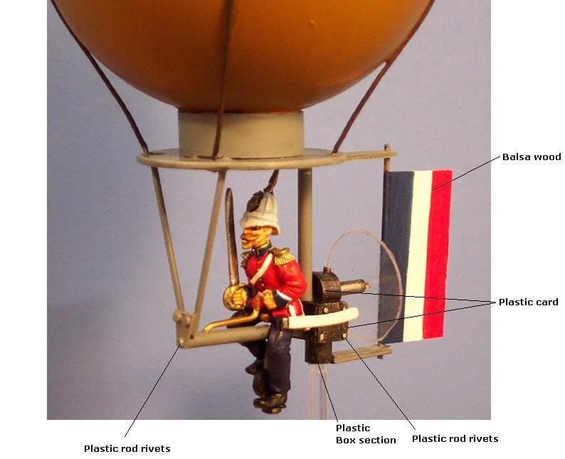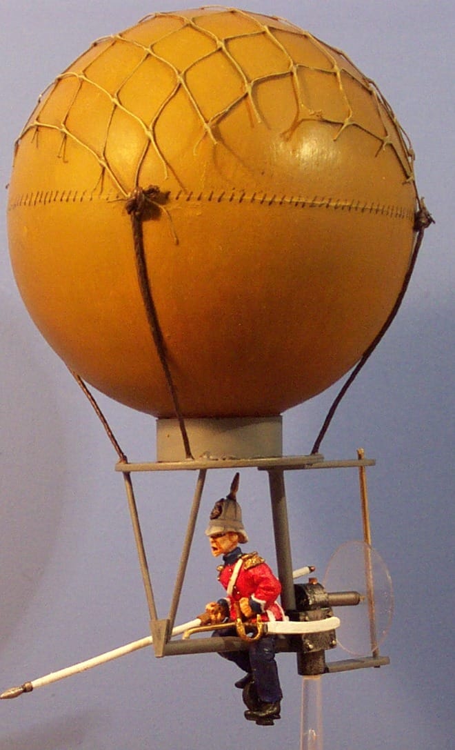 The net over the top of the balloon was a diamond shape cut from an onion net bag. This was quite tricky to get neat and was achieved with a lot of trial and error and a lot of onion bags (Scratch builders never throw anything out. Eco friendly lot). The cord was then tied to the four corners. This was then stretched over the ball and super glued in place at the centre line. Again this was a bit fiddly with both net, cord and balls being stuck to my fingers at various stages.