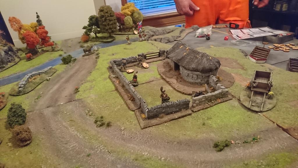 The Jacobites went first and opened fire on some of the redcoats coming out of a wood from the east of the farm and on par with the rest of the game totally missed, the redcoats advanced from both the east and west laying done very accurate cover fire managing to pick off the Jacobites cowering behind their hard cover walls.