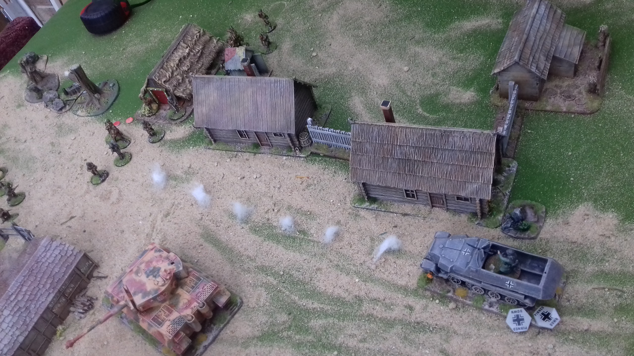 With all but two of the Germans dead and 4 points of shock, the badly shot up hanomag reverses out like a racing car...