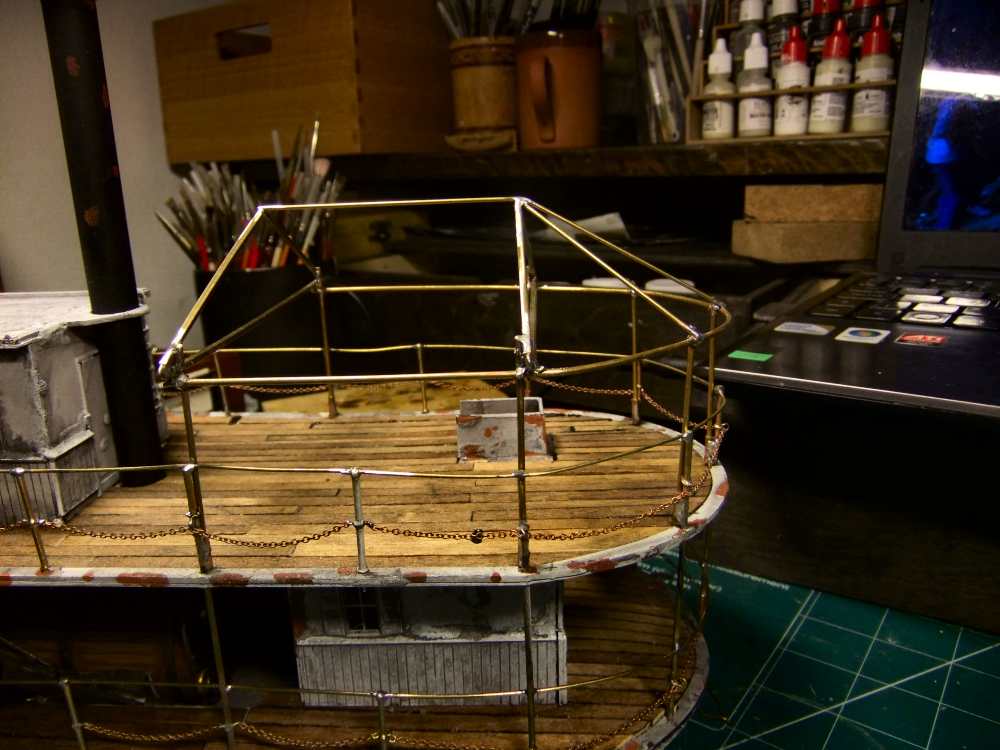 The canopy structure was made from soldered brass wire. You can here see how the handrails were made to.