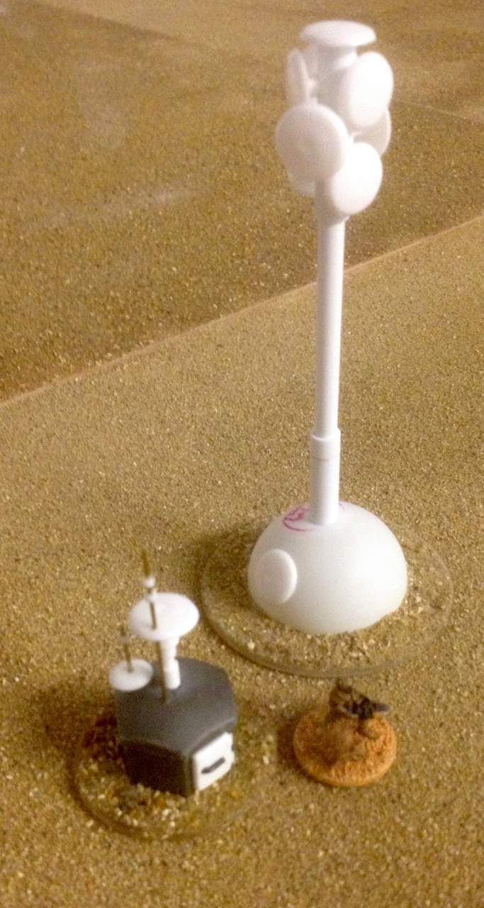 Started on some scenario objective markers today - a communication tower and a monitoring station.  Poor pics curtesy of my iPhone and crappy garage lighting: