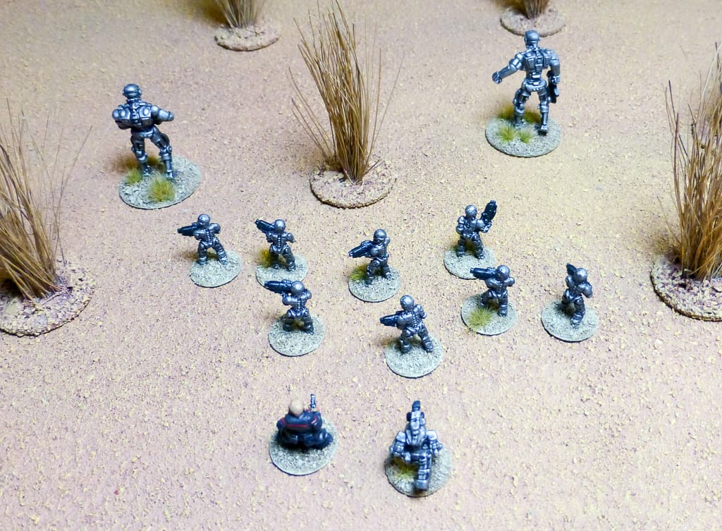 The cyborgs open fire and inflict heavy casualties on the techs while Rigor and Mortis pick off the remaining security guards and the crew chief. Things aren't looking good and the medic's morale waivers and he makes for the safety of the APC