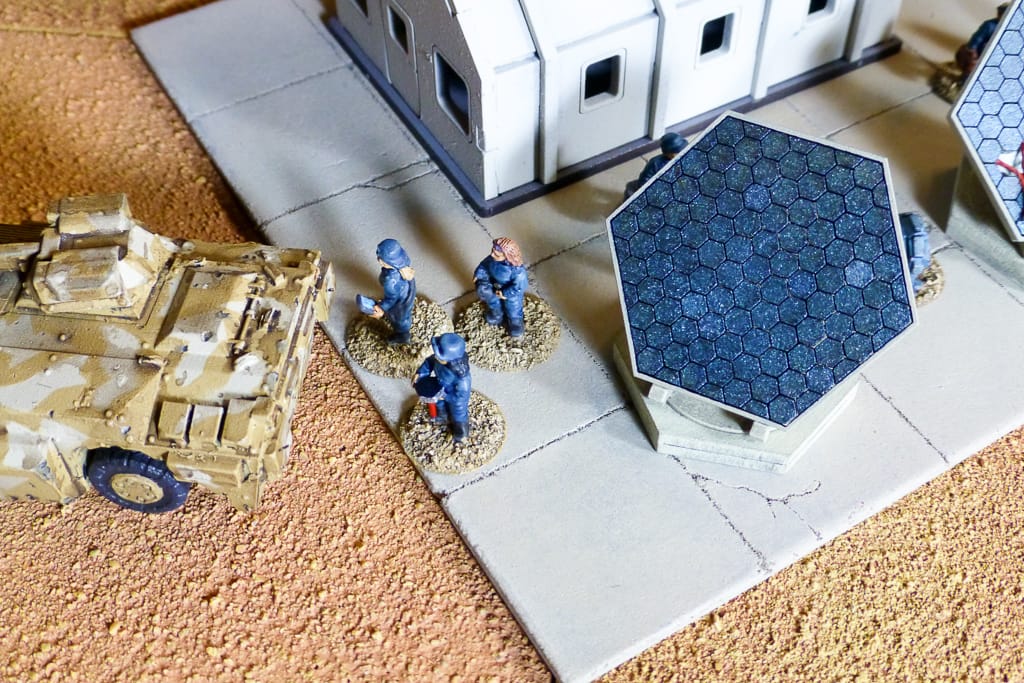 A recent storm has caused damage on a remote outstation of SandPort and a group of technicians have been sent to fix the place up. There are 3 damaged items, a solar panel, a comms array and a power sub-station each of which have varying amounts of complexity and damage. The techs have an APC to travel to the outstation, but none of them have been qualified on the turret weaponry so it's been disabled. The techs consist of a Crew Chief, a Medic, 3 security guards, 5 techs and a repair droid.