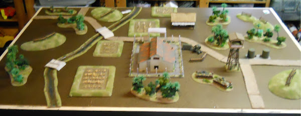 In the interest of saving time and effort, I took an afternoon to pull all my boxes of WW2 terrain to catalogue, re-arrange, and take pictures of the setup for each in a finished state. This will help during setup of each board for local events, such as Operation Sting and Adepticon, especially if I am unable to attend. Though each of these boards has been posted here in both finished and WIP states (which I've linked to below), these pictures now represent optimum setup.