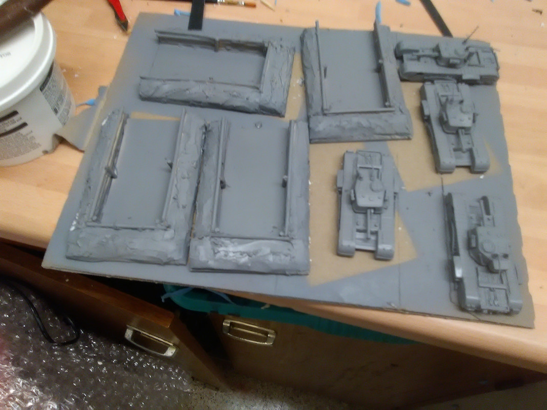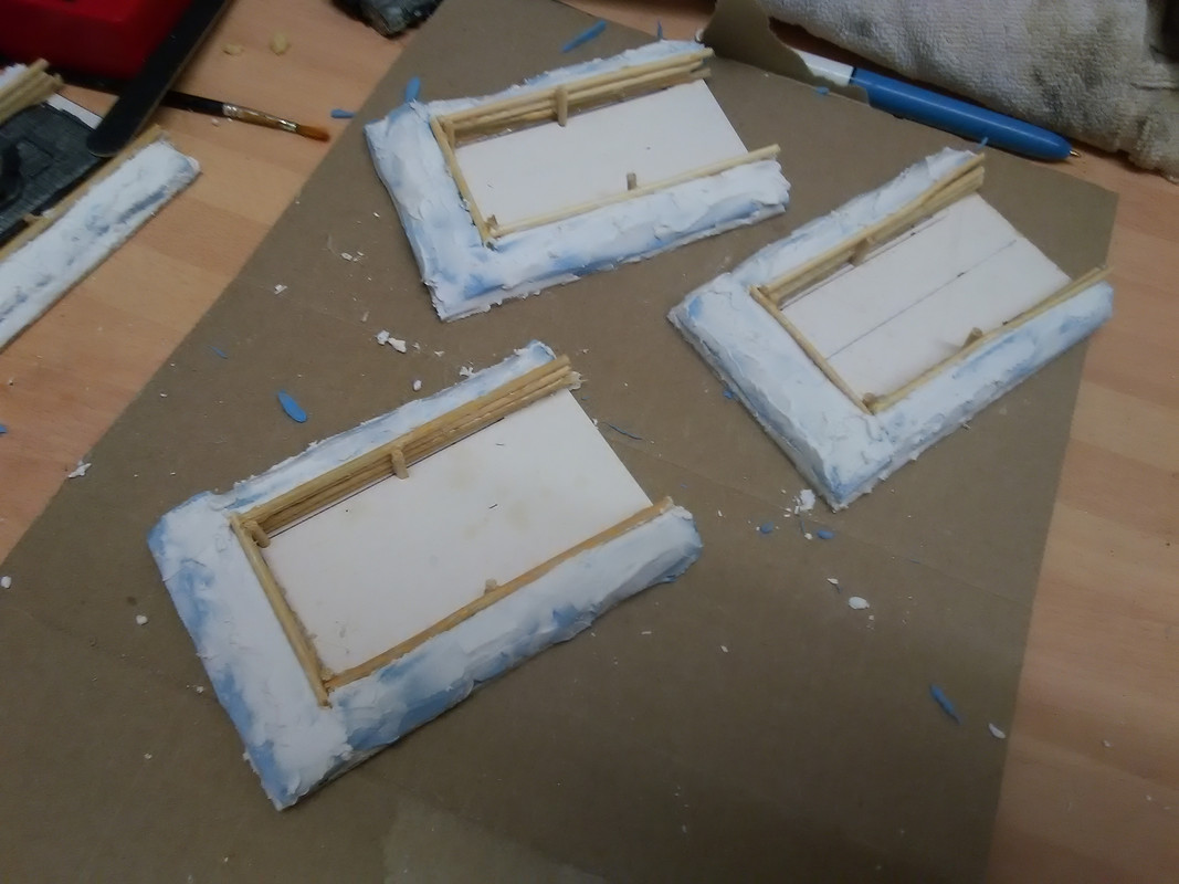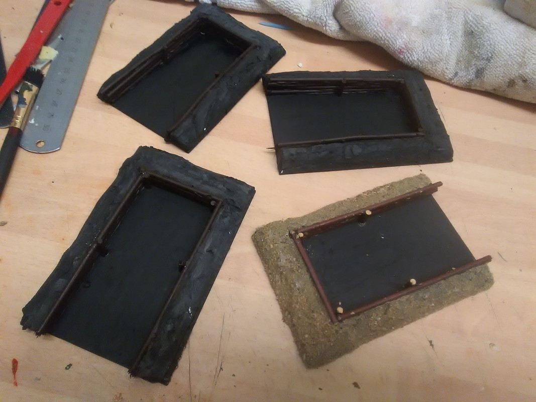 Chopped the locating lugs off the bottom so they sit flat and cut some thick card bases 80mm x 120mm