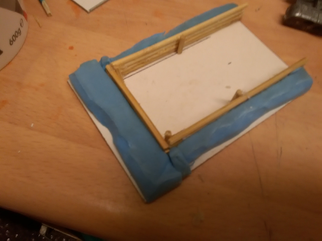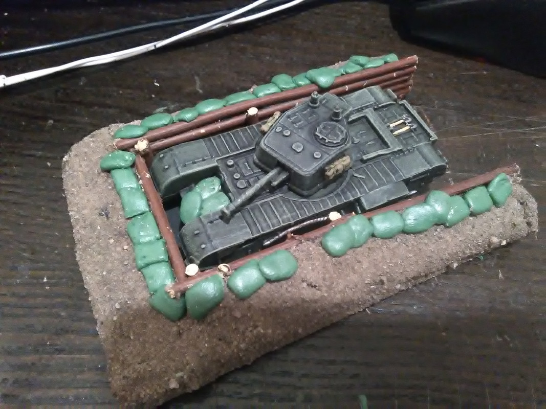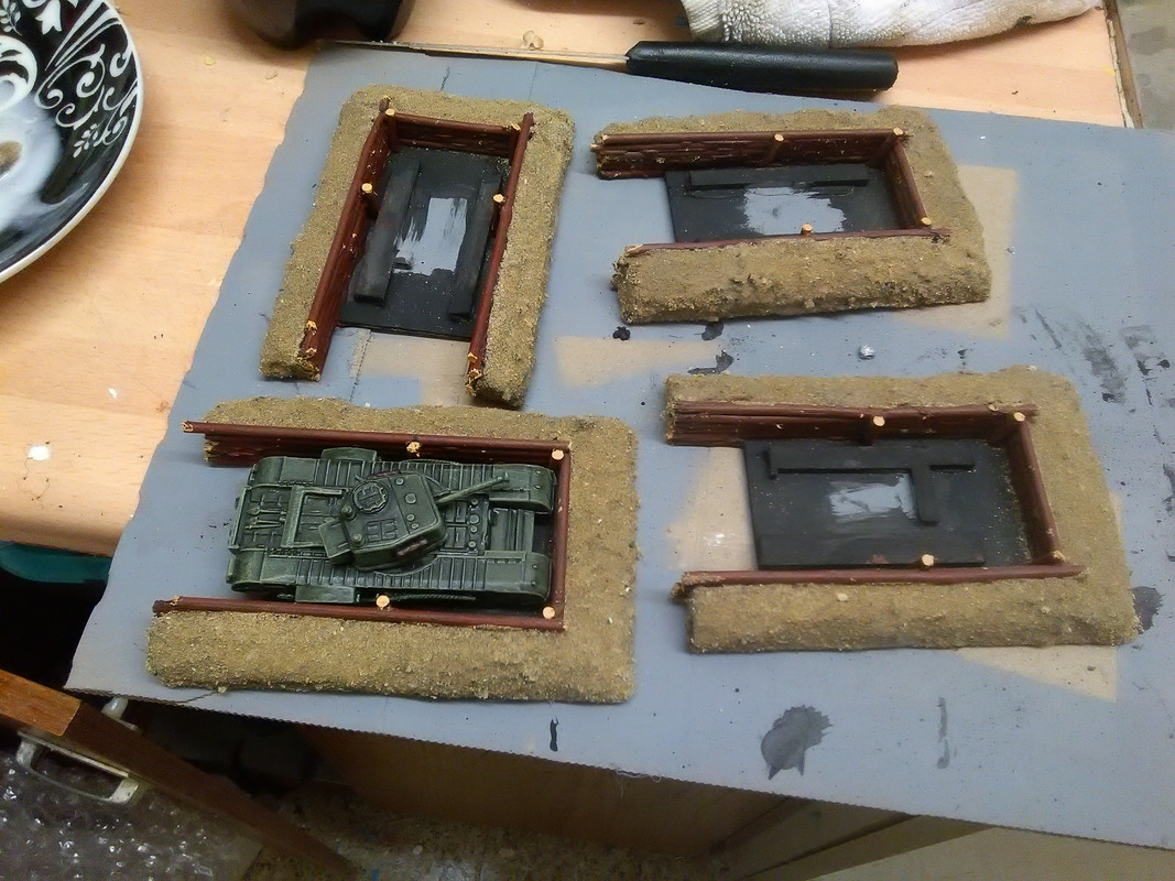 Earth banks will be textured and grass added and a row of sandbags or two along the top of the logs. Or I could do it snowy? For some reason this is making me think of Korea , or being dug in on the banks of the Rhine in miserable weather in winter 44-45....