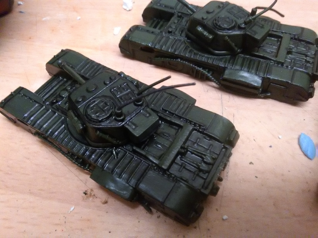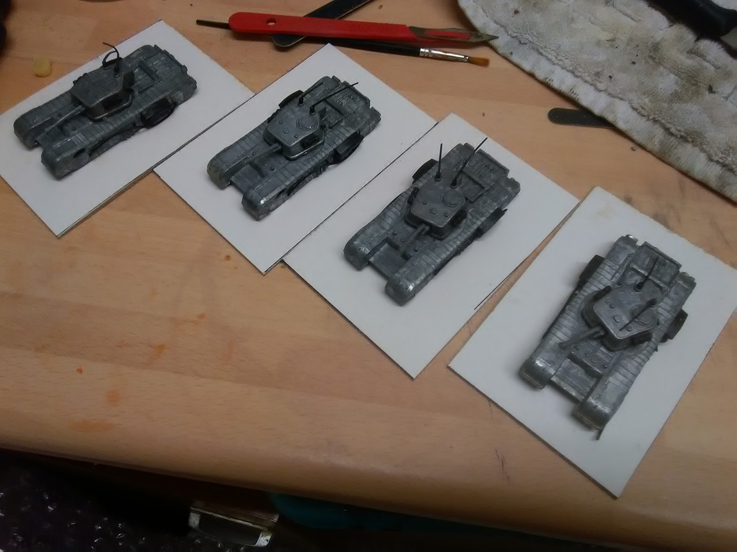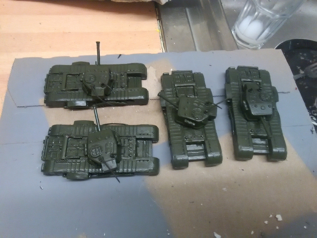 Sooo, I got these 4 diecast Churchill tanks from my wargaming buddy Peter. They are spot on 1/87 which is a scale we don't game in but they are such nice models (well the top halves are, I am coming to that) that I wanted to do something with them.