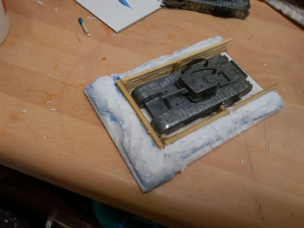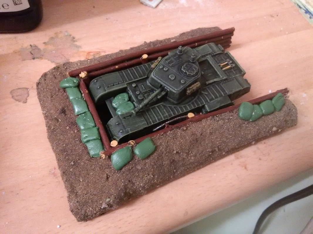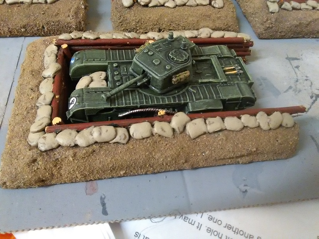 I decided that I would just use the upper hulls and hit on the idea of a sort of drive in bunker constructed of logs and earth where only the turret would be showing. I am sure this sort of thing must have existed, maybe I have seen it in a film somewhere.