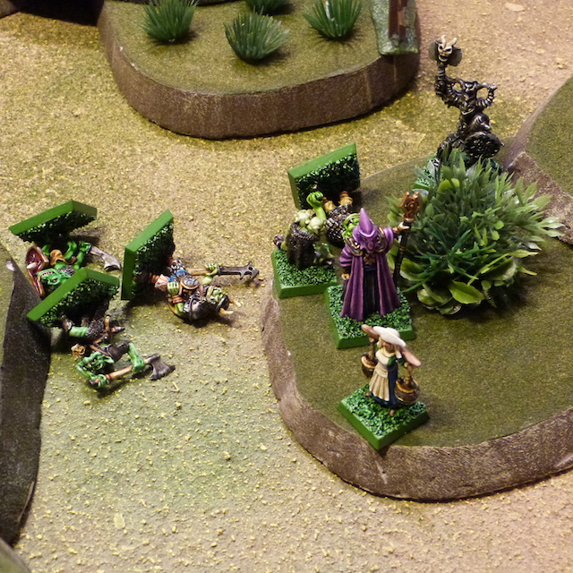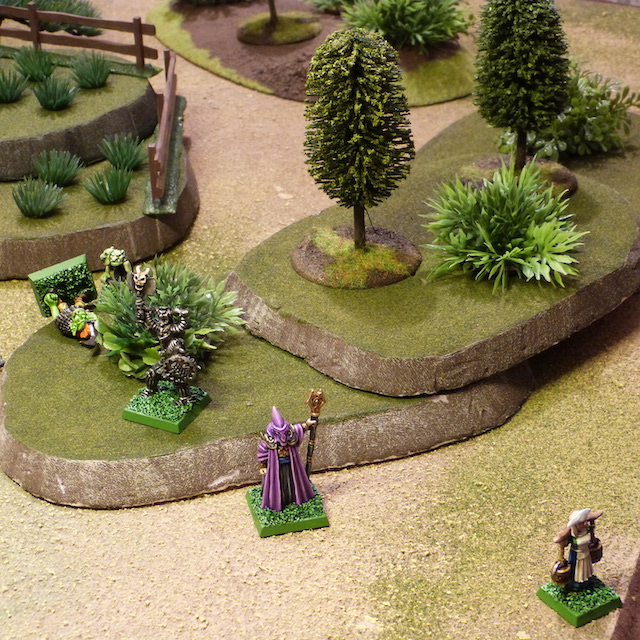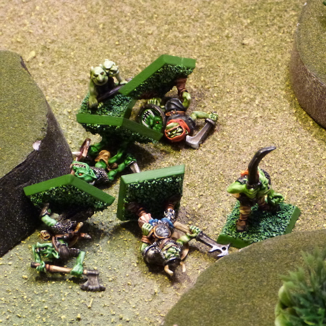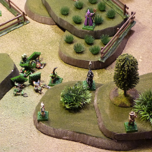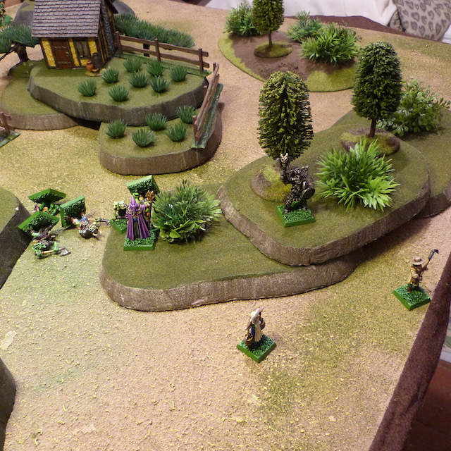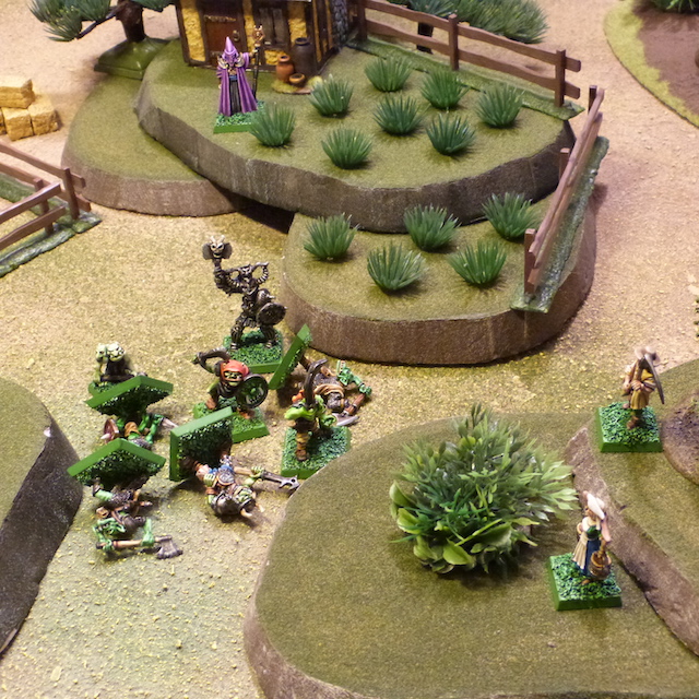 "Do you want to earn your pay? Then kill the Greenskins..."Overview of the board with foes, villagers and PCs deployed.