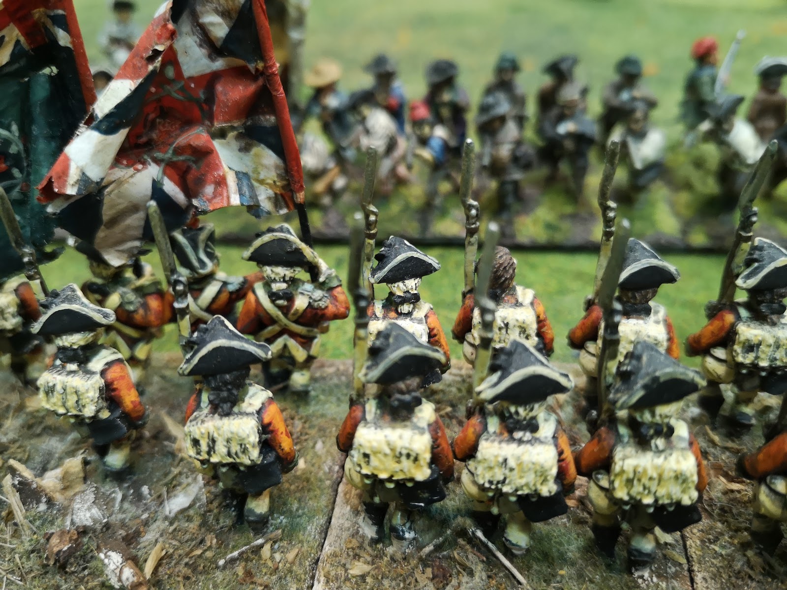 Ah, yes, there is the hanged man - now I see it.  And thank you for the order of battle.  Does seem a bit weighted in the British's favor: 10 units to 9, 32# of guns to 24# of guns.  Of course, depends on the objectives of the respective sides.  Again, nice table to feast my eyes on.
