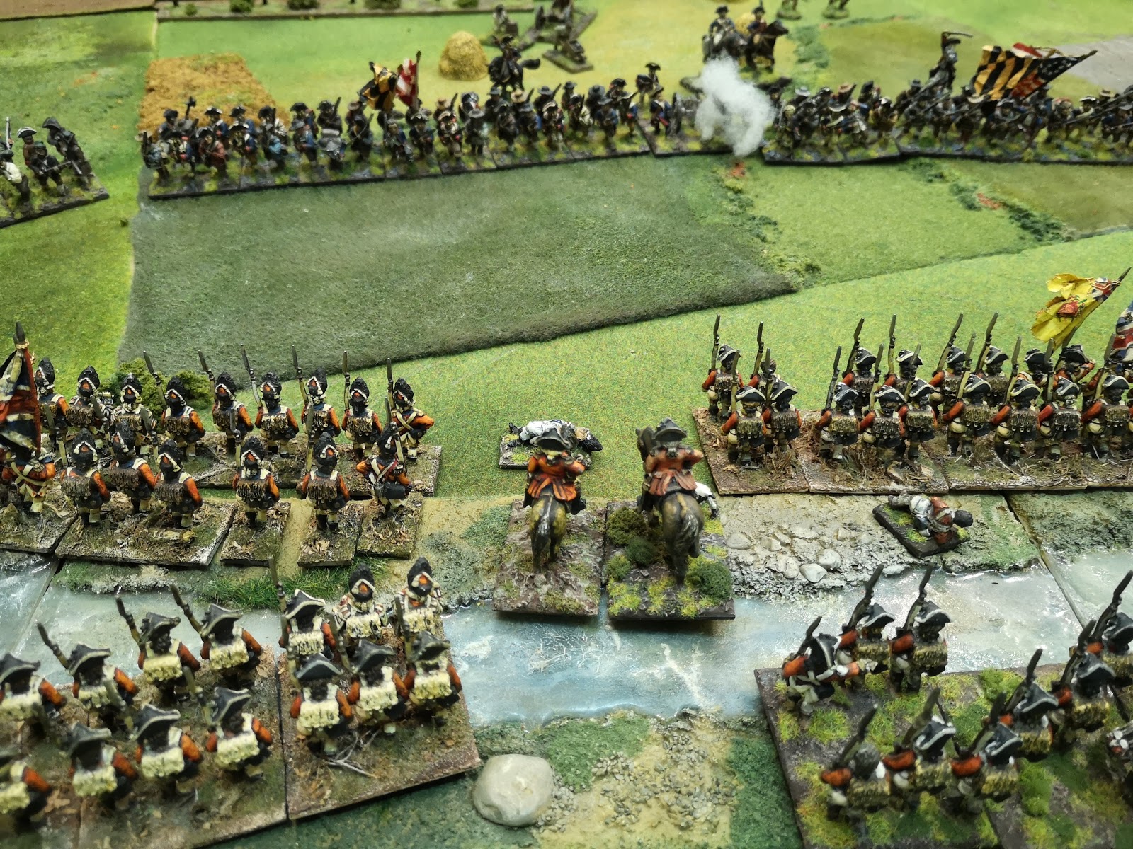 My command advanced across the ford towards the waiting rebellious colonials under musket and light artillery fire, before my lead battalions were given the order to level the bayonets and charge!