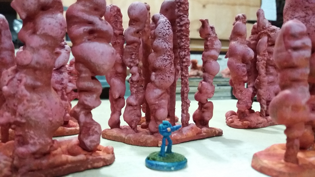 I like the creepy look that they have, a very nice idea. You could make a set for something like cave terrain as well with those.