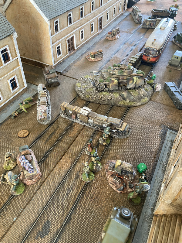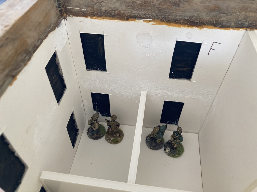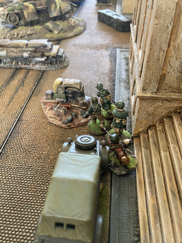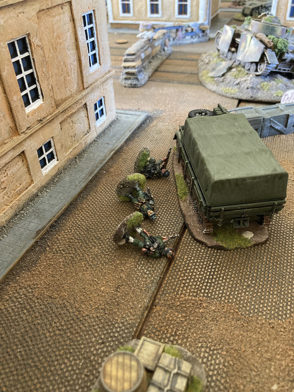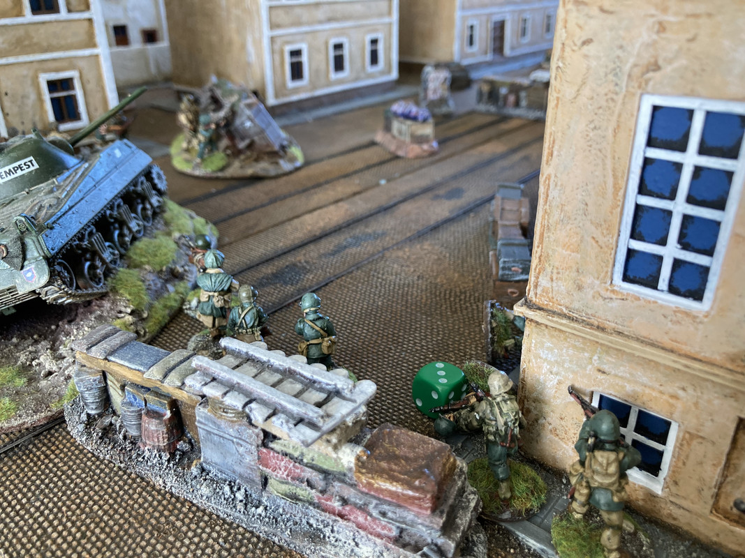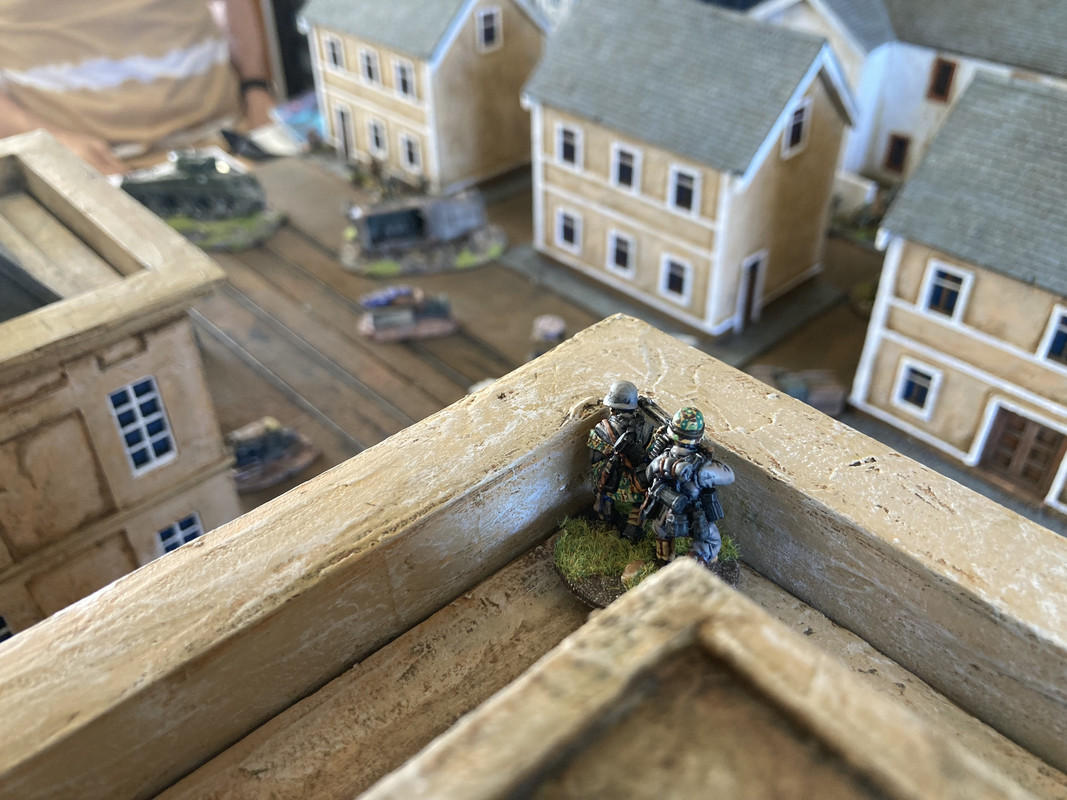 As the other half of the unit advance thro the building, they reach the other side of it, and take out a German MG section, that was just about to ambush more US GI’s.
