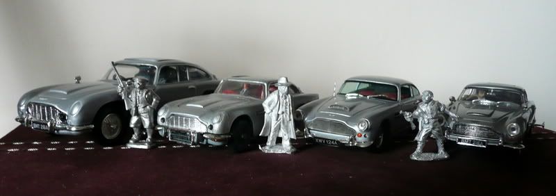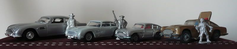 L-R: Del Prado ,  Corgi,  Corgi  & the original Corgi Gold DB5 which is in fact a little smaller than the silver birch one in my other picture.