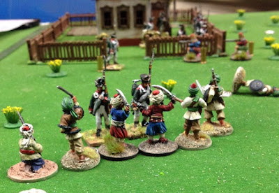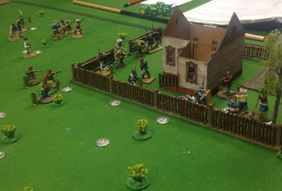 This fortnight we returned to the Song of Drums and Shakos rules, we played the Attack on the Farm House Scenario. Dave and Maurice took command of the colourful Ottomans and I girded up my loins and led the out numbered but better trained Russians.