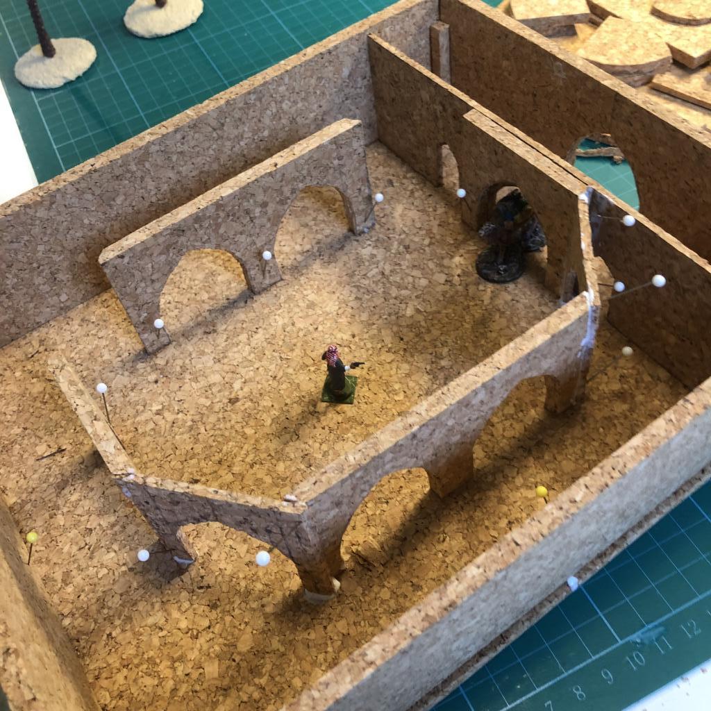 I needed rooms large enough to fit several figures based on pennies in. It had to be one storey, and allow for diagonal rooms as well as having a gatehouse.