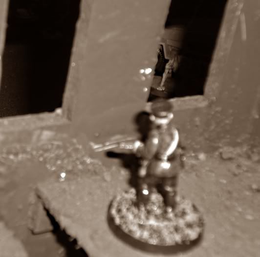 Hitting the ground both men suffered injuries, stunned and hurt they staggered to regain their feet. Too late, zombies crawled through windows and shell holes from the building's interior and the two men were swallowed up by the horde. . . .