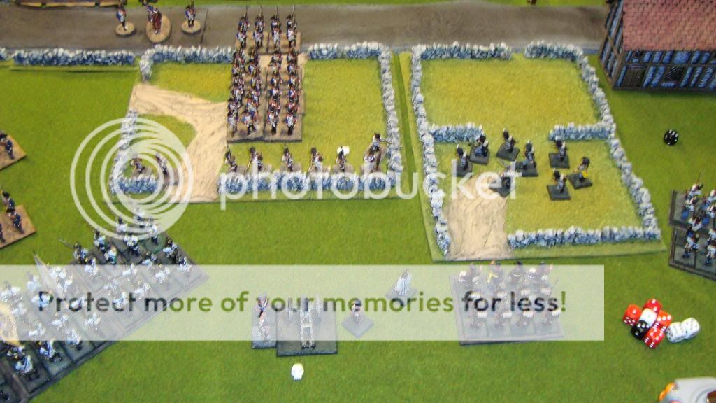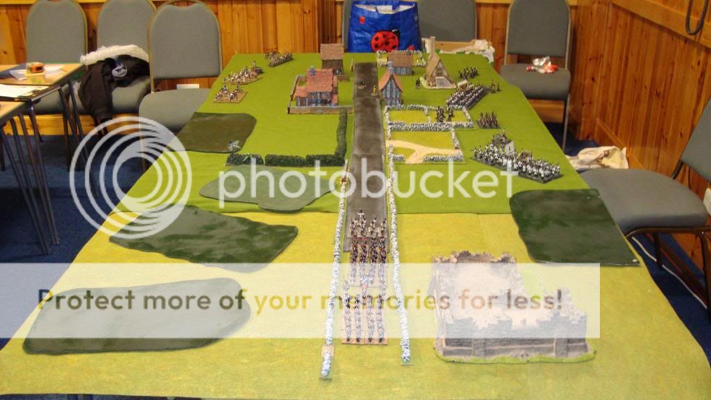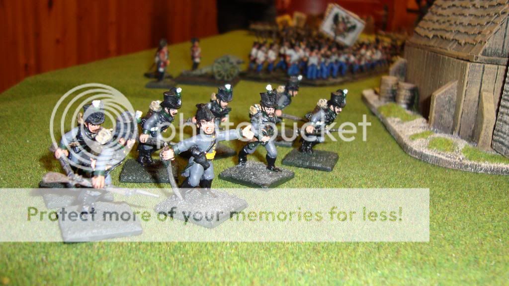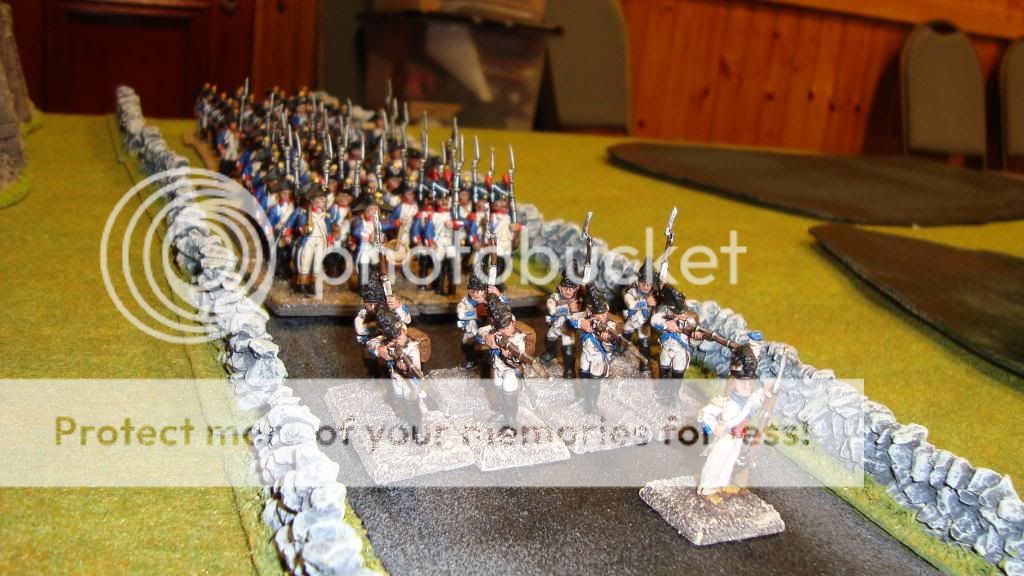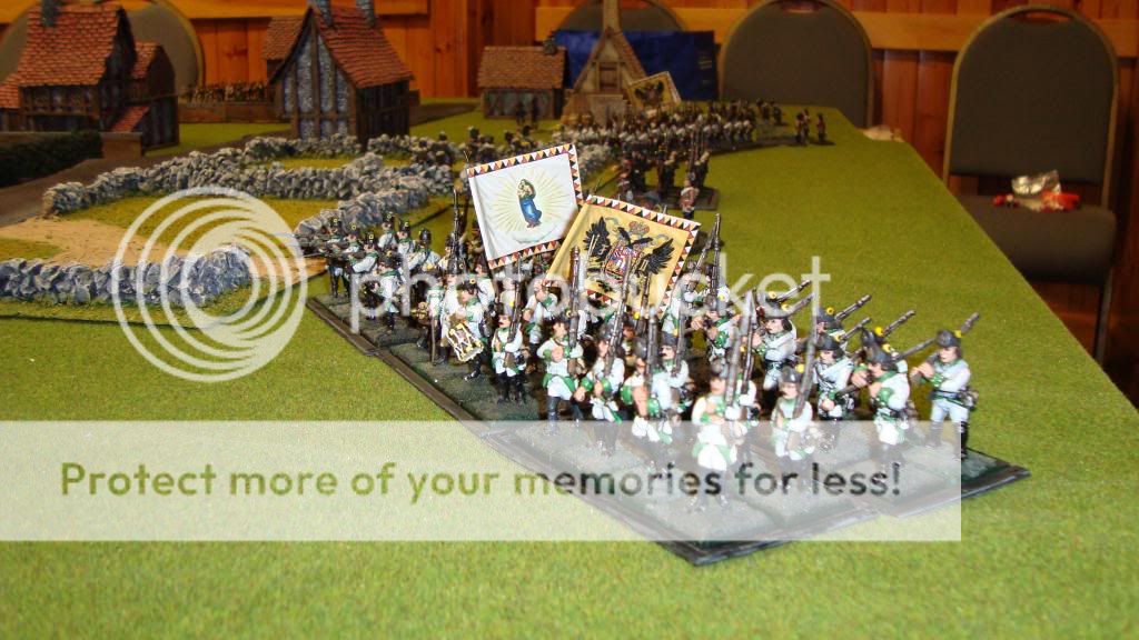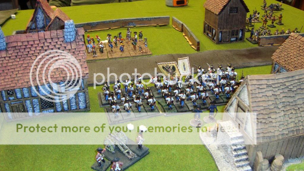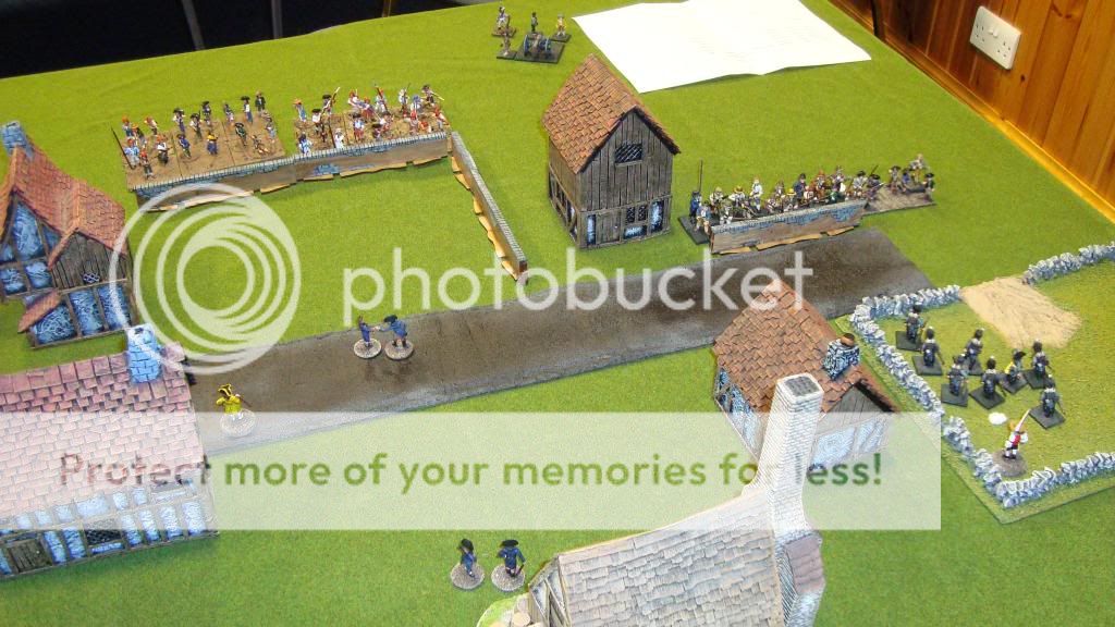 Well myself and Generalwinter at long last got round to having a Black Powder game set in the French Revolution. It was a contest for a small hamlet between the heroic forces of the Austro-Hungarian Empire against the dastardly mob of Wolfinstien citizens and their approaching fiendish French allies. The Austrians needed to secure the hamlet before the French could link up with their allies. The game is picture heavy.
