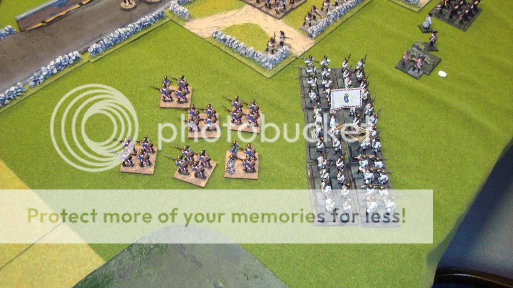 The second French column collides in to the flank of the men from Budwies but they in turn are assaulted in the flank by the Alucard Friekorps.