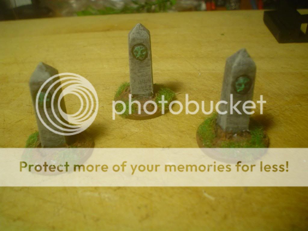 I decided that I wanted to start the year off with some painting mojo. So today I got three more mysterious obelisks painted. I'm pretty sure that these will be objects of cult veneration.