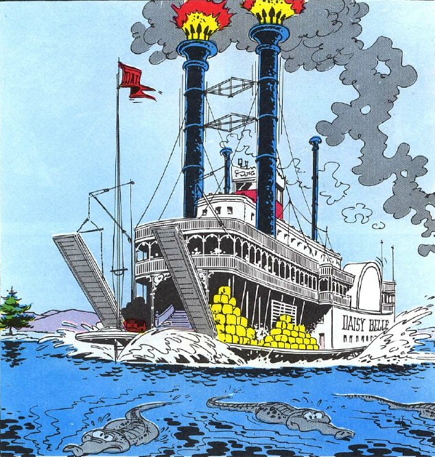 http://bd-wars.blogspot.be/search/label/All%20Lucky%20LukeThe next addition to the Lucky Luke project was quite unplanned. I accidentally found the Lemax christmas ornament "River Belle" and thought it could work with the project. As an added bonus, it has a passing resemblance to the Daysy Belle from the "Boat race on the Mississippi" album. Not quite the same, but close enough.
