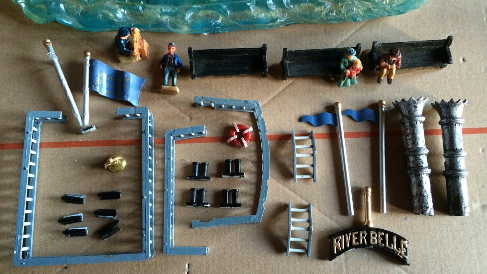 So here's where we are now. Another look of the stripped down Belle with some Atlas Lucky Luke figures. Next step will be to do something about those christmas wreaths attached to the sides (although the material being so hard to work with, I may just paint them as they aren't too conspicuous) and fill in the gaps in the upper deck planking where I removed the benches. Also need to remove the moulded "River" and replace with "Daisy" for the name.