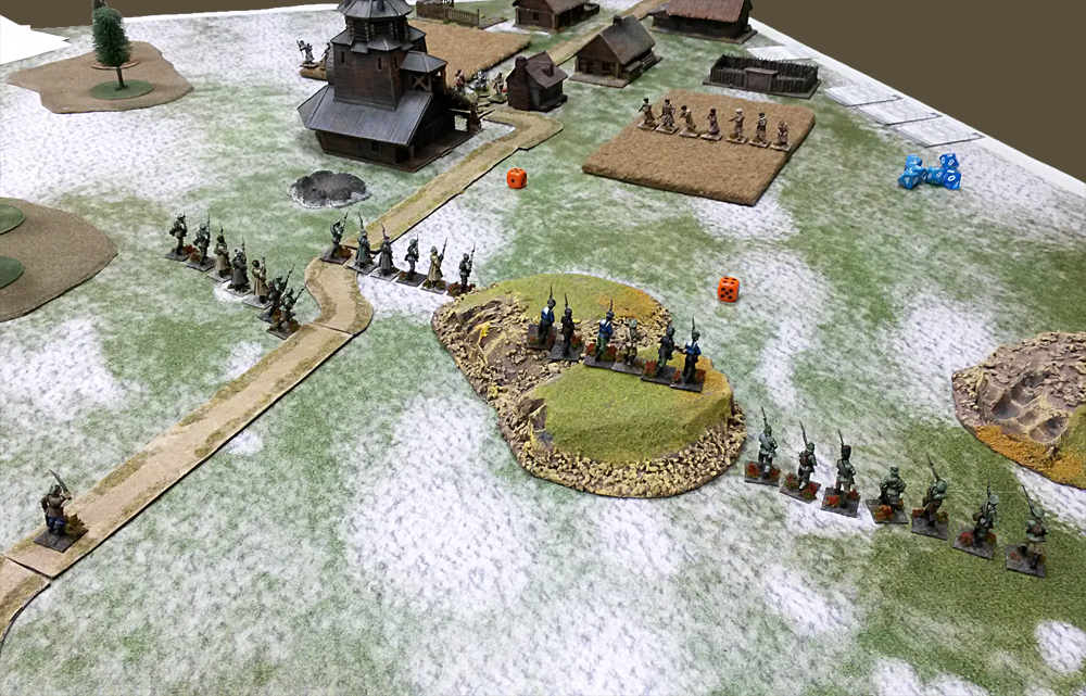 Firefight is very bloody for reds, but they manage to drive volunteers from the table with the help from artillery battery.