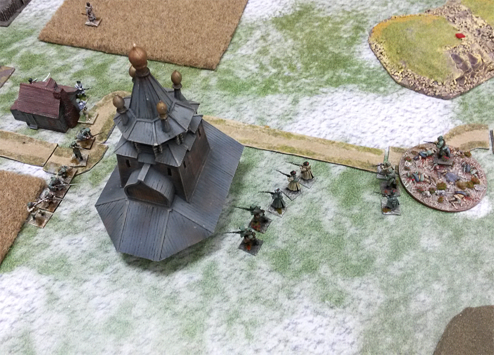 Fate of battle was decided in the church. Reds managed to capture it, but white commander rallied last defenders and personally led them to the close combat. Chances were thin, but nearly half of red conscripts  suddenly decided to change sides.