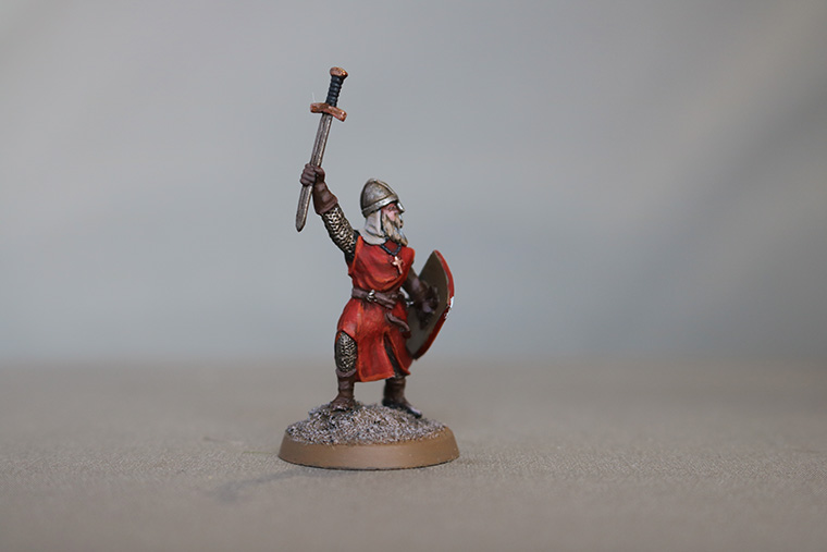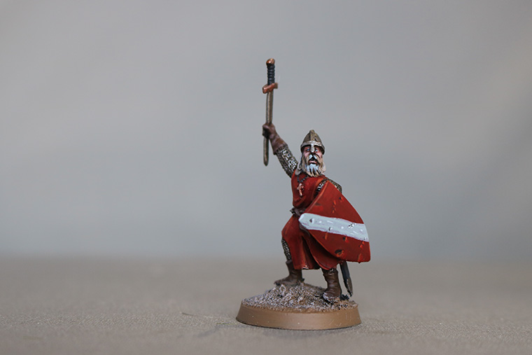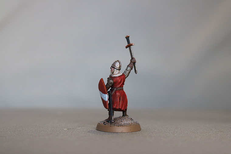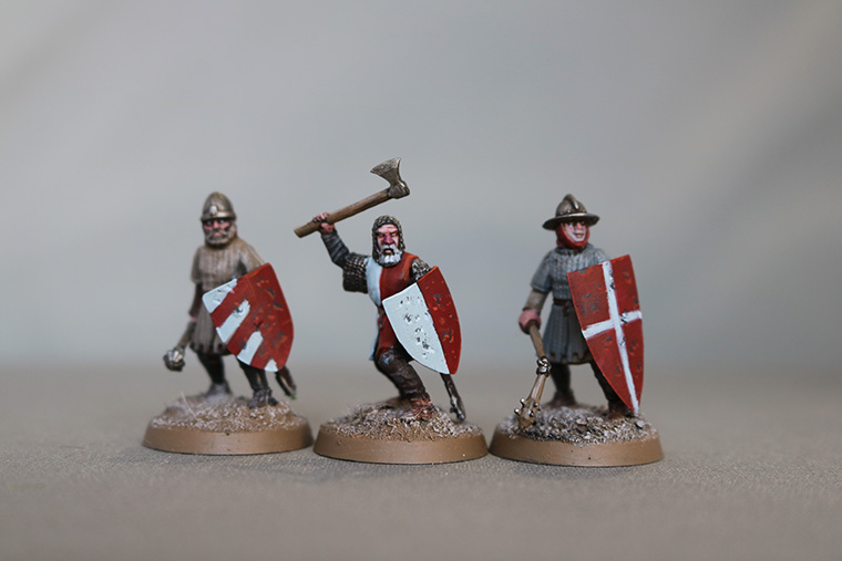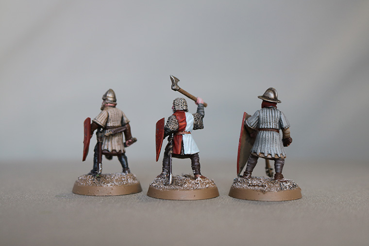 The two guys on the left I had painted once before. I changed their shields to the red and white I use on the others too so they match. The guy on the right was a miniature that was standing half finished in my closet for quite a while. More of these coming soon (I hope)