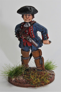 This gentleman is an officer of the Virginia militia serving with the ill fated Monongahela-campaign in 1755. After his escape he settled in a frontier fur post, now leading the regional militia angainst French an Indian attacks.