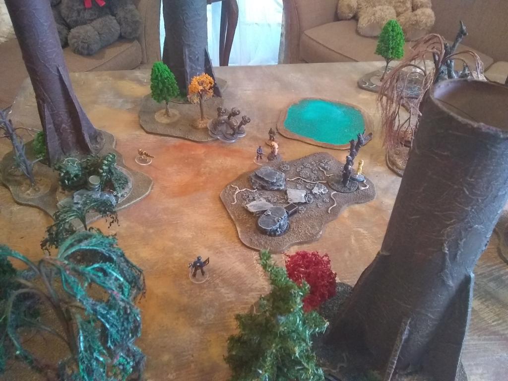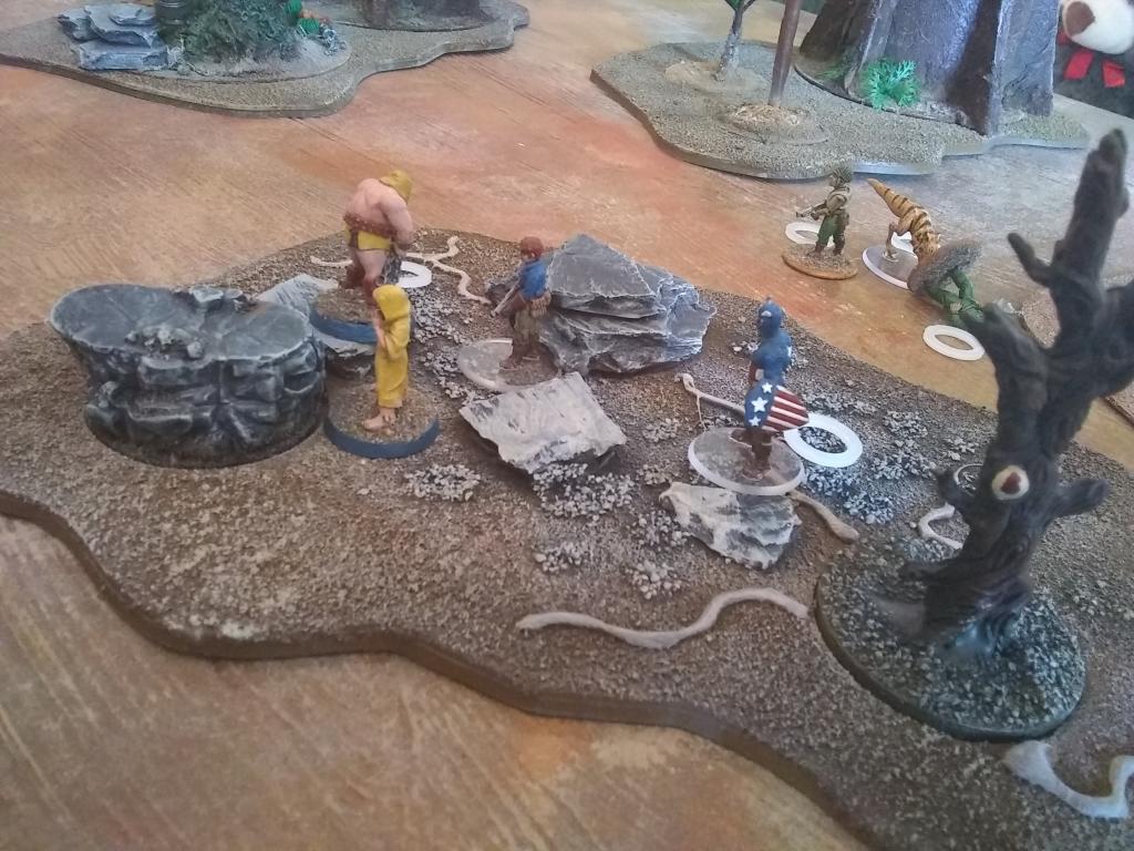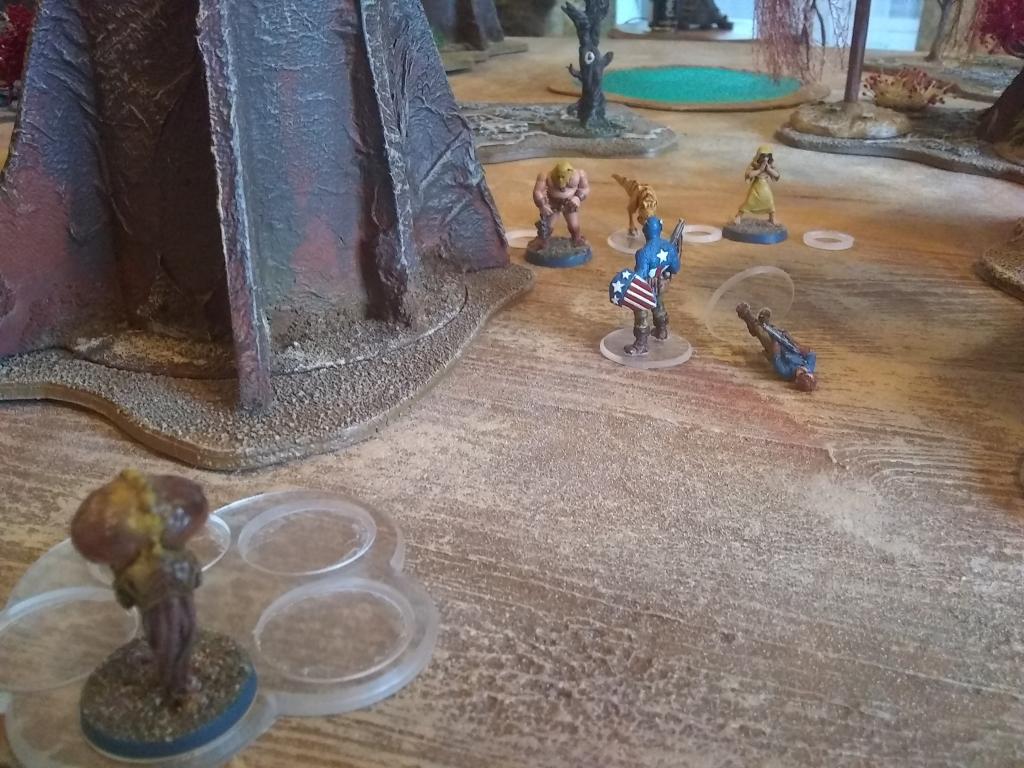Couple of games of Pulp Alley with my new forest terrain.  The Church of Starry Wisdom goes toe to toe with Captain America and Bucky!