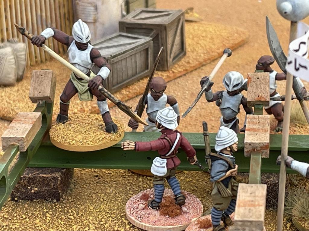 A game of 'Age of Penda' by Dan Mersey. James Morris has made a special 'off-set grid' battlemat as described in the rules to play the game on.