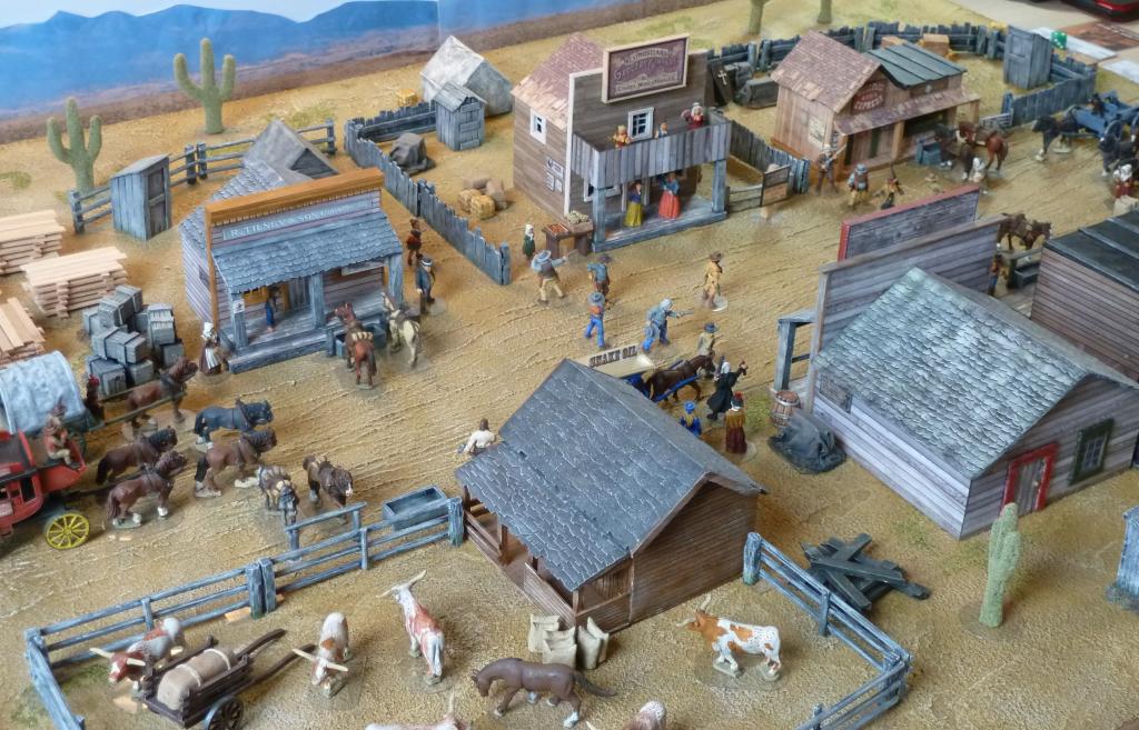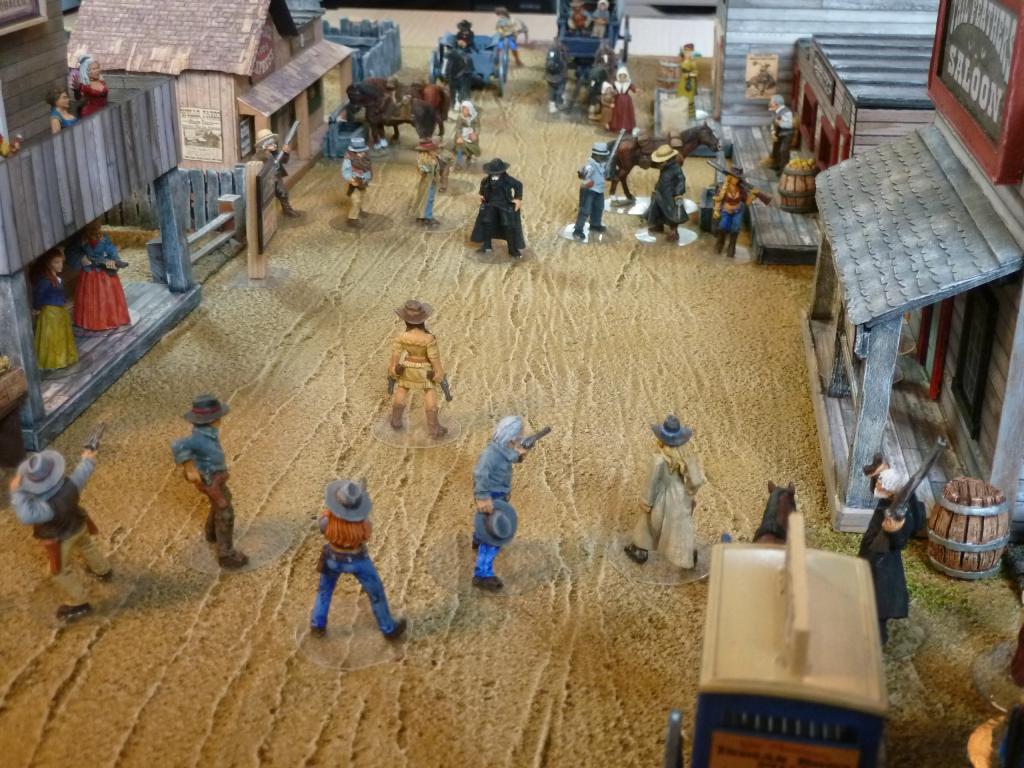 The Judge (in black) and Mary had a falling out and decided to resolve it on Main Street, they were backed up by various friends and hanger's on. The Judge went for his gun first but was distracted by the pretty girls on the balcony and fired last.