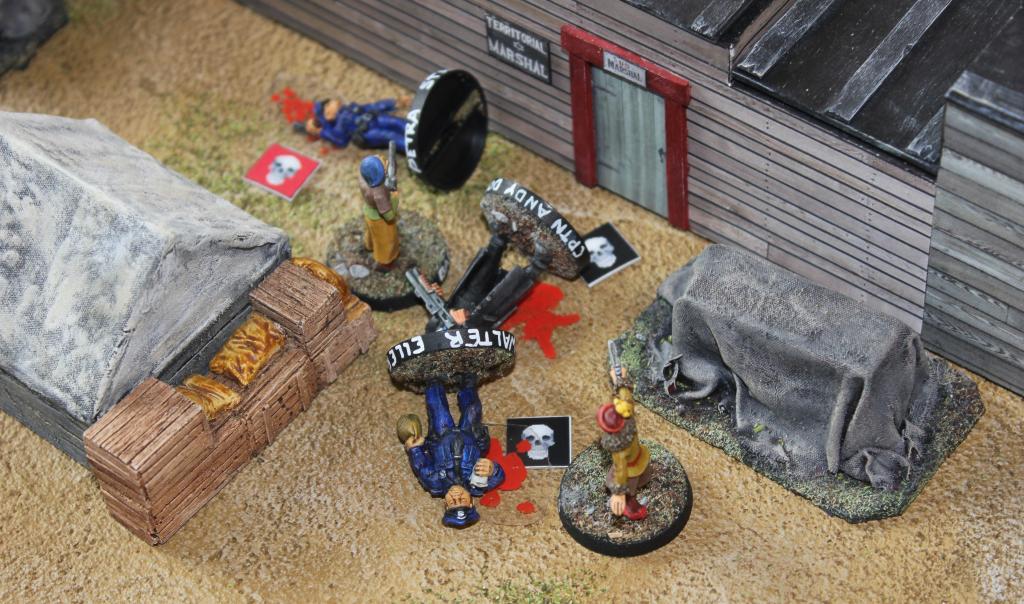 Texas Red was shot in the back by a grumpy old timer who objected to being woken up, Whiskey Jack was wounded and lay in a pool of his own blood, Barmey Snapcase was shot down by some one but I couldn't see who done it due to the dust.
