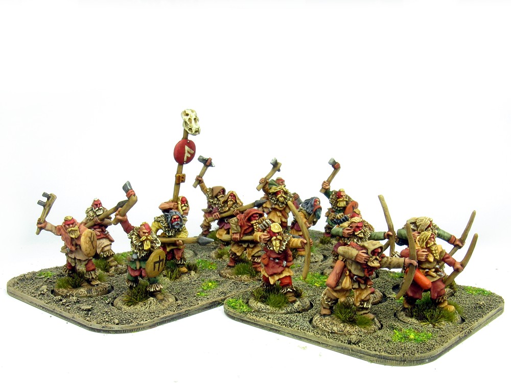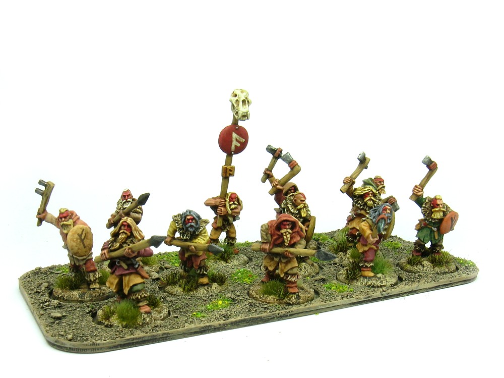 After another hiatus for painting and handling the latest Bloody Miniatures release, I've painted a few more reinforcements for this collection. First up, some more of the Copplestone Barbarica 'Ice Tribe' - kind of Viking / Cavemen types. Not quite sure where they fit into 'Not Hyboria', as we already have Vanir / Aesir types in the Barbarica range. I guess these fellows come from further north still, on the margins of Hyperborea perhaps...