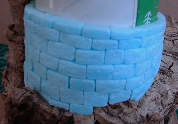 The Pringles tube has been cut down in height.  The tube and cork bark glued to the 3mm MDF base with exterior PVA.