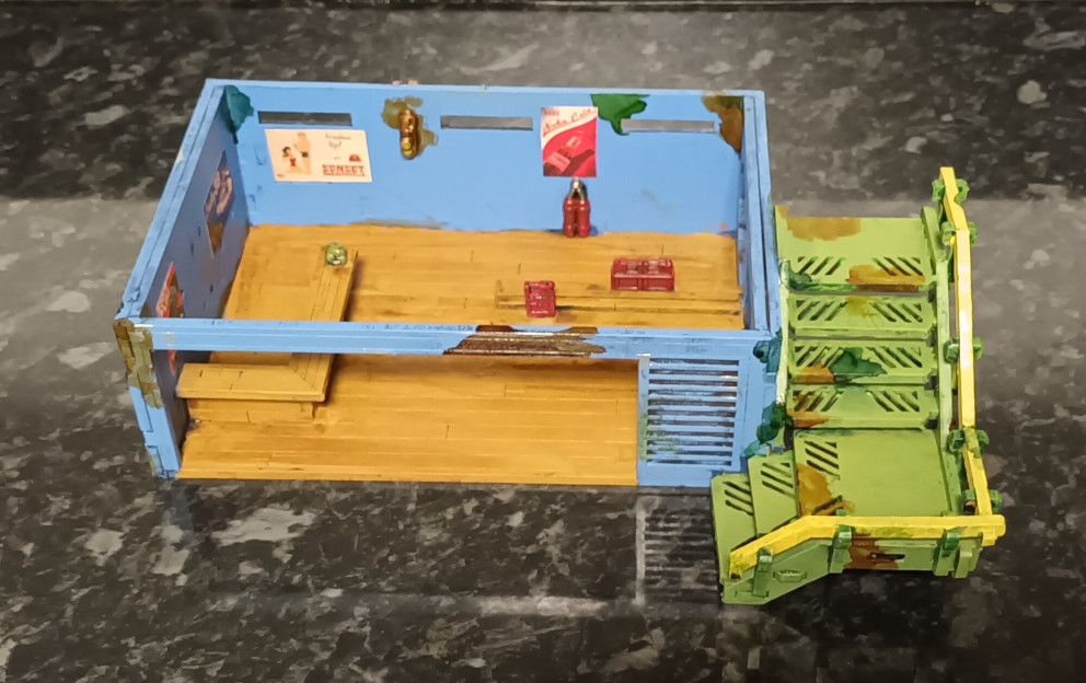 Work in progress of Hab Block from TTCombat, to be honest, this was a nightmare kit to work with, pieces to large, or warped, parts snapping when trying to punch them out. I'd like to say I'm happy its finished, but this is just the roof section of the first building...argh!