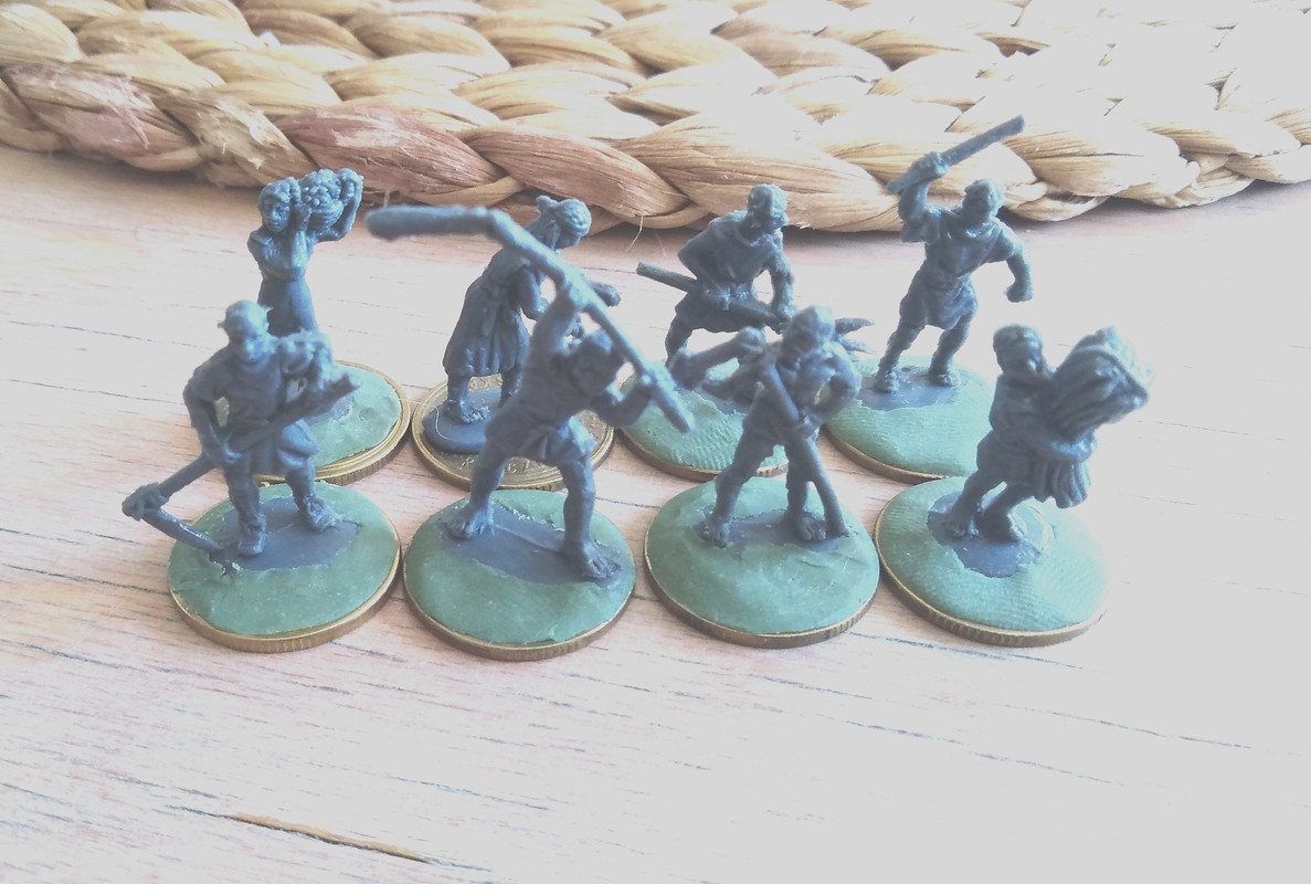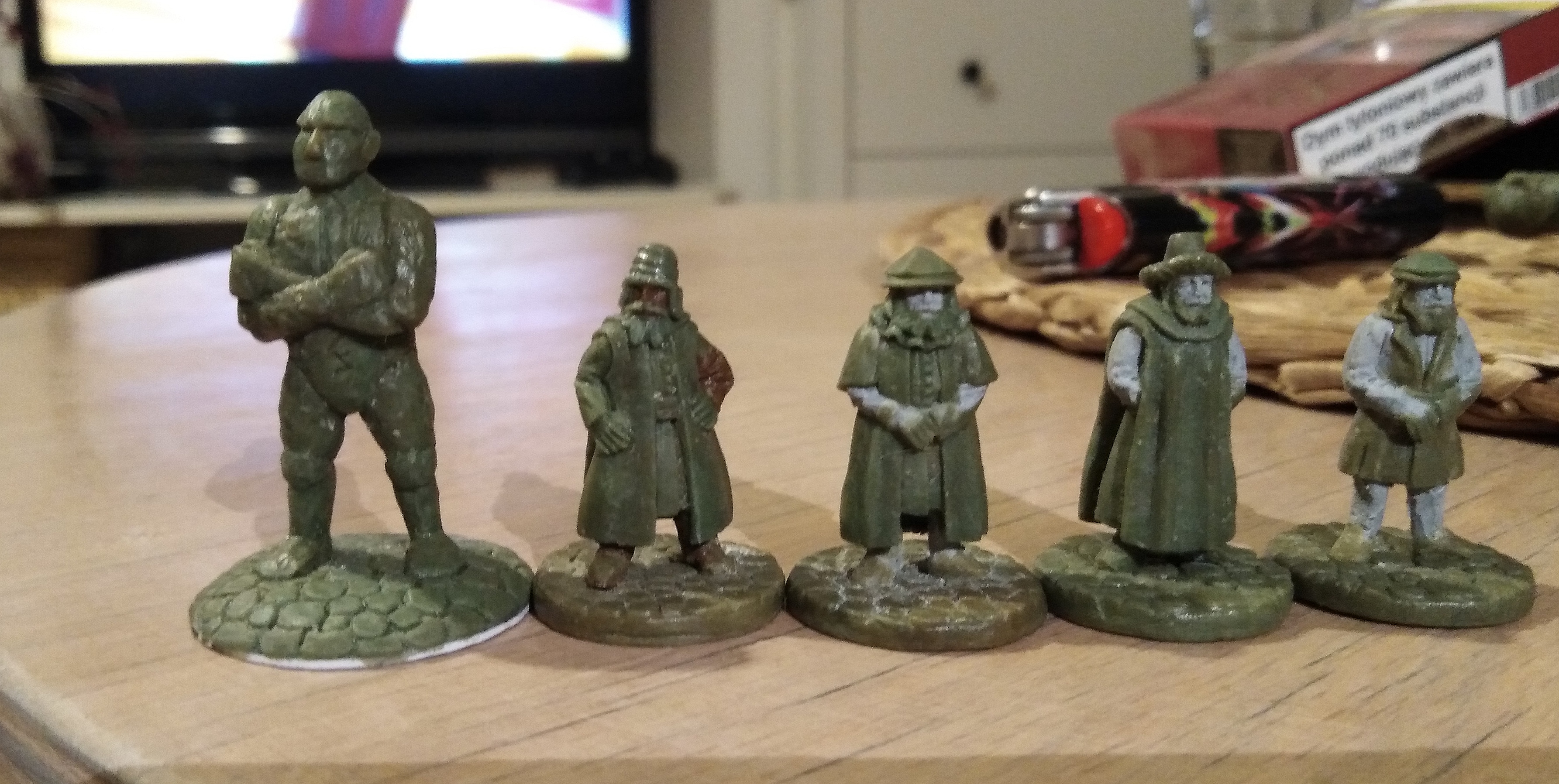 They are all based on contemporary sketches of the Jews from Prague by Roelandt Savery ca. 1606. The one next to the Golem is based on a sketch, which according to historians depicts the great Maharal - rabbi Loewe the chief rabbi of the bohemian crown, and according to the legend - creator of the Golem.
