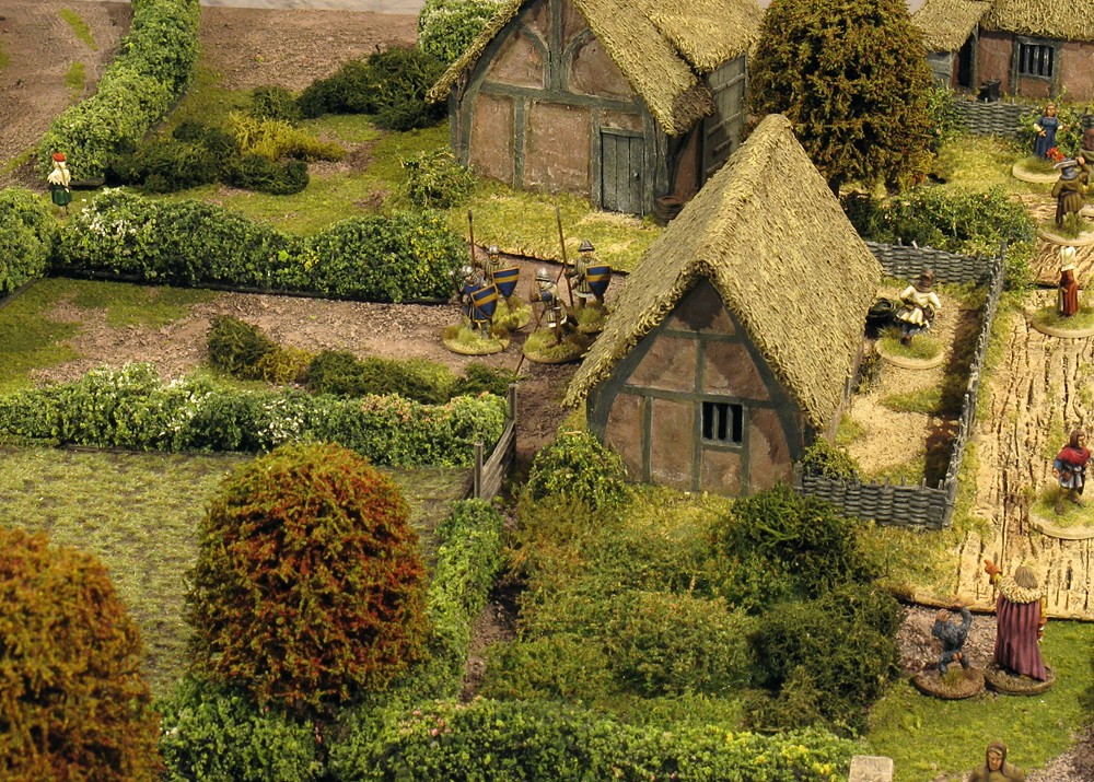 Meanwhile, Sir Guy de Mordant will enter the table top right in this next picture - in the vicinity of Nether Thatch. He is set upon ridding the King of this turbulent priest. He’s not sure why, but murder is on his mind.