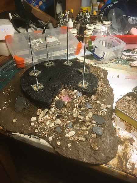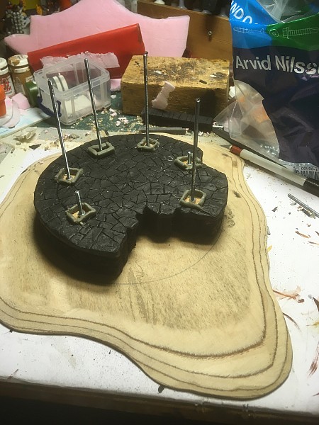 The gallows platform is basecoated and I 've fixed the pillar 'rebars' in place