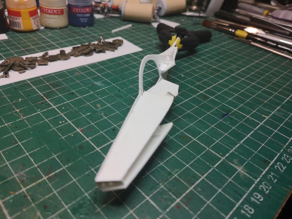 Started carving up the foam for the base and putting the speeder into roughly the right position so I can start the caved in cockpit.