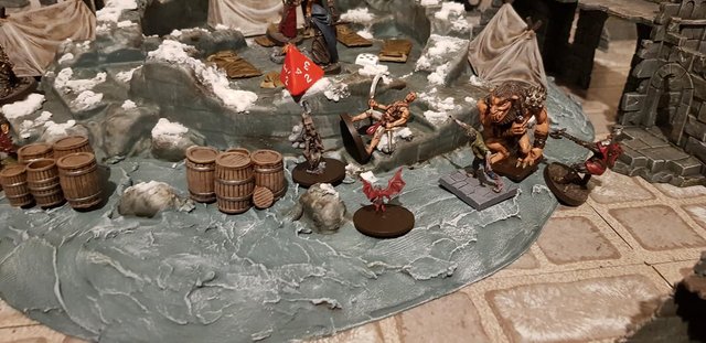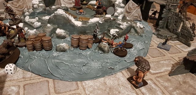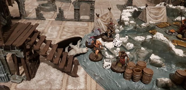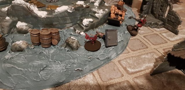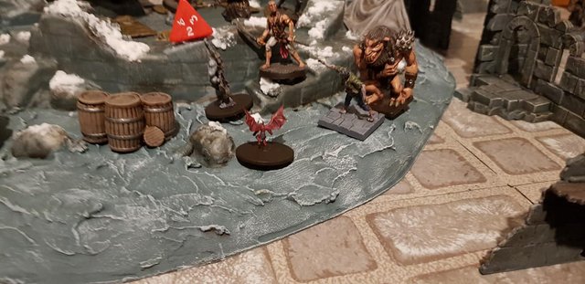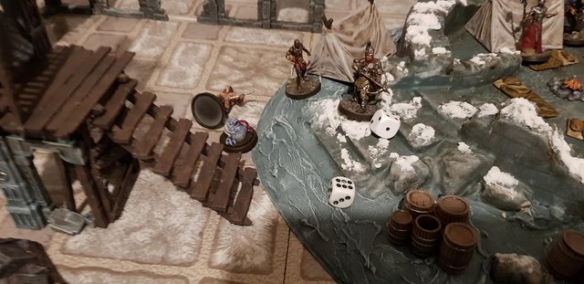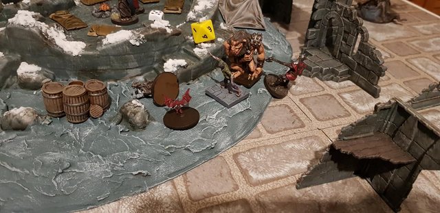 The Barbarian is taken out by the ice toad but recovers post game. Luckily as he has a magic weapon.