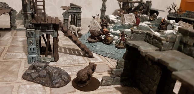 I randomly rolled up the creatures of the night and ended up with a varied hoard that featured a vampire, snow trill, bear, boar, , white gorilla snow leaped, wolf, imp, a couple of small constructs, wild dogs, Ice toads, skeletons, ghouls and a whole bunch of rats.