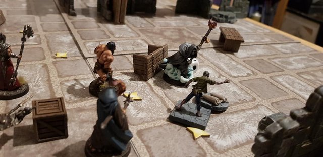 The rest of the party took out the skeletons, with the Infantryman limping out before investigating the special markers. Which gained the Barbarian a magic weapon and the zombie doom loot to take back.
