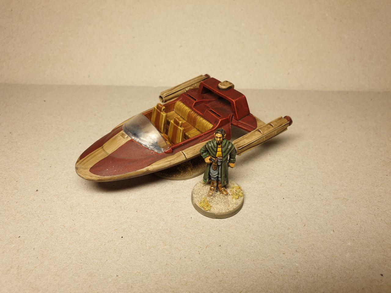 I finished the first of two speeders I had on my desk; this is a dainty sports model, still looking relatively pristine (considering the circumstances on Tatooine of course...):