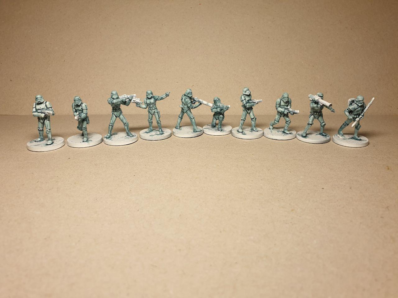 And finally, there is also some small progress on the first squad of Stormtroopers. After their coat of white primer, I inspected them for remaining mould lines. I did find a couple, and I cleaned those up and retouched the white primer.
