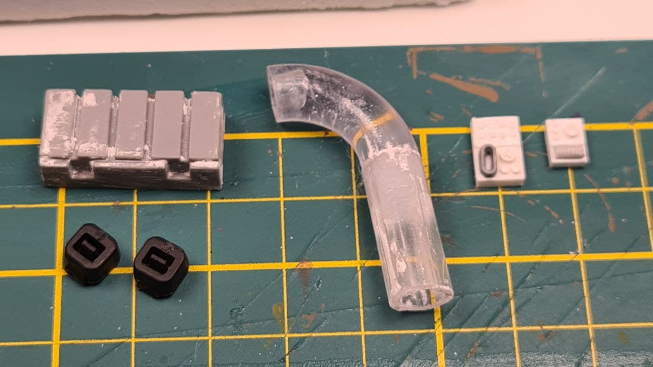 And then I raided another bitsbox for some larger pieces to dot around the building. I settled for some tubing, a part that I