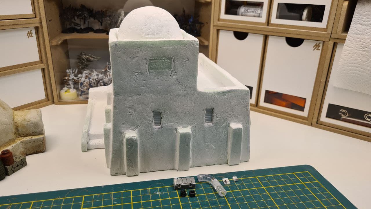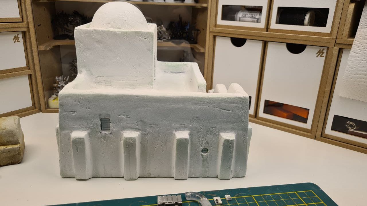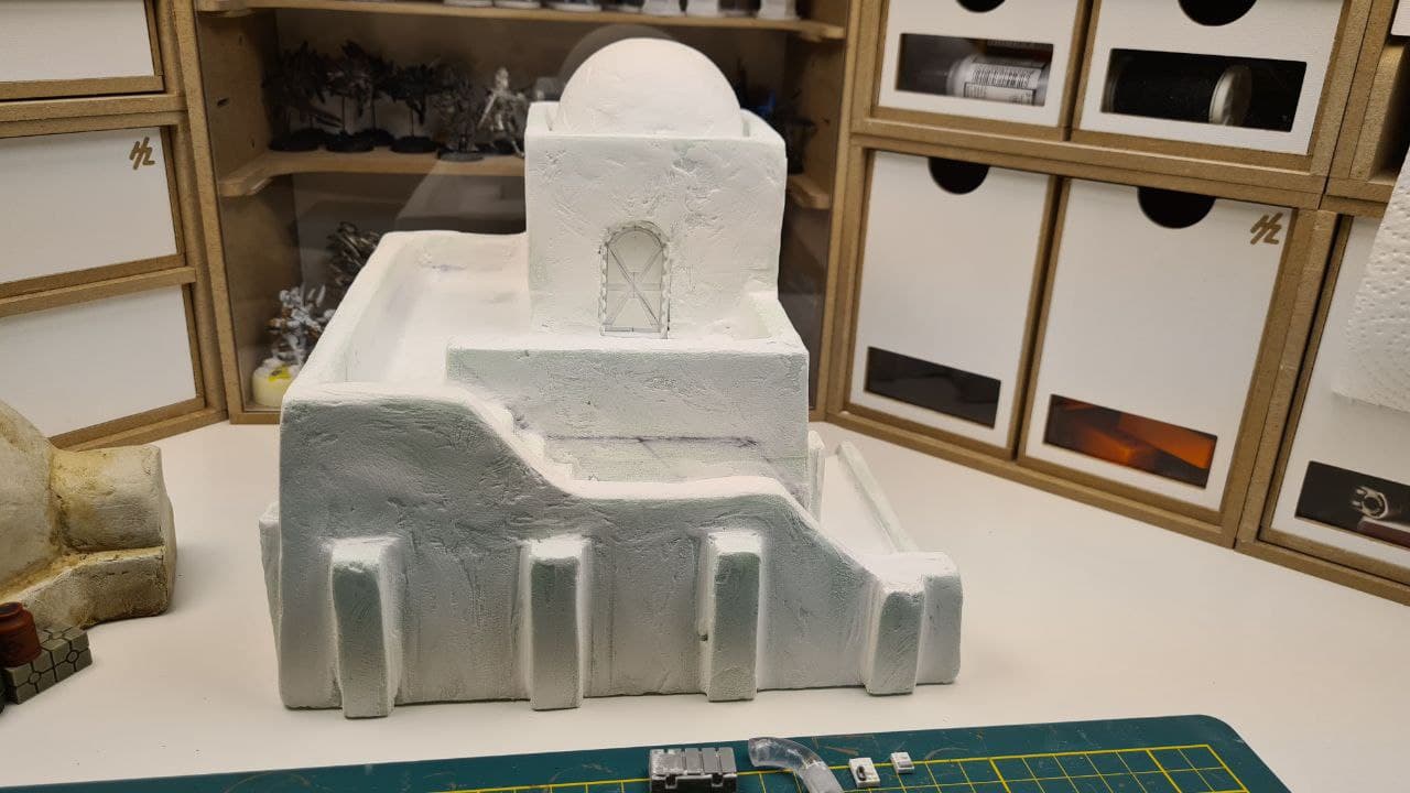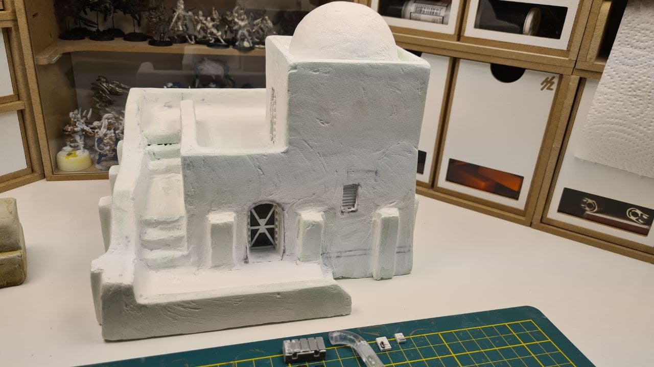 But once sanded, the building started to look like a proper adobe-style construction, and it was ready for painting.