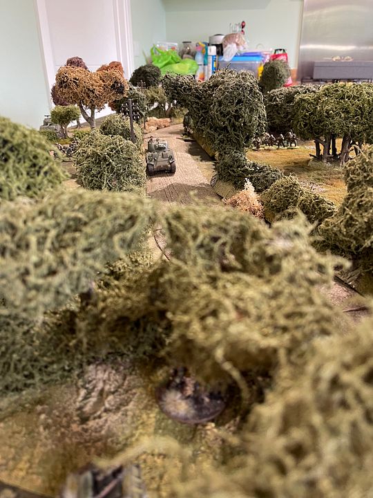 The battlefield was typical Bocage, with the Americans fighting up the board as we see it.