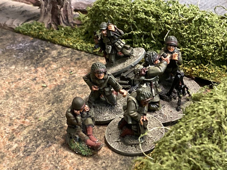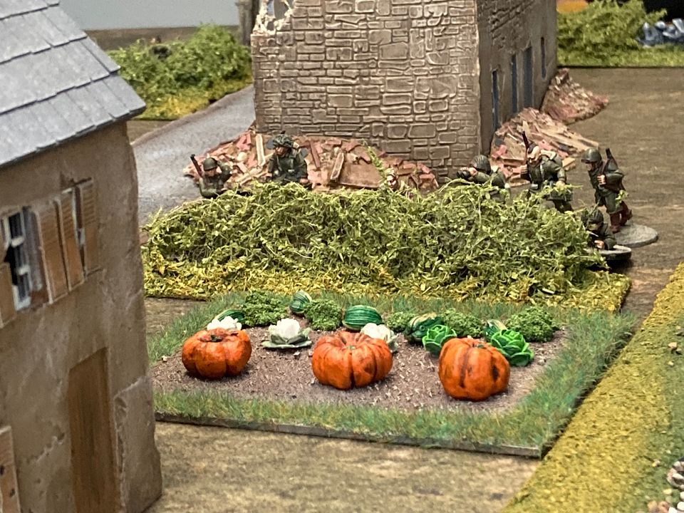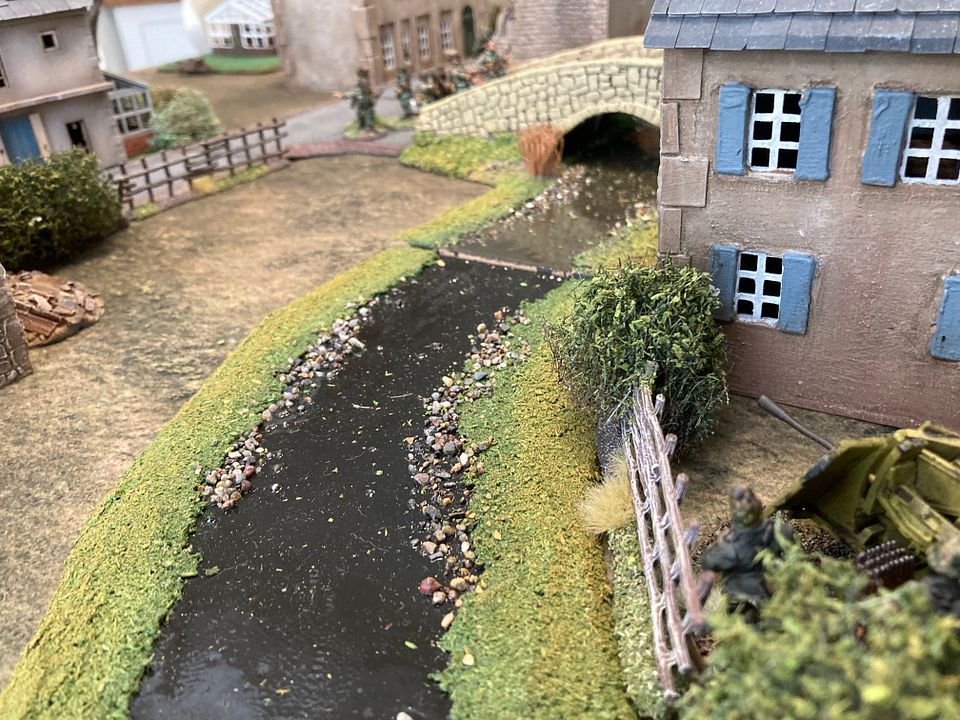 Before it too was neutralised by the barrage, the remaining mg team in the church finally broke the bridge section which promptly ran off the table edge….however, it turned out to be a support section and the impact on the Americans morale was negligible. 😩